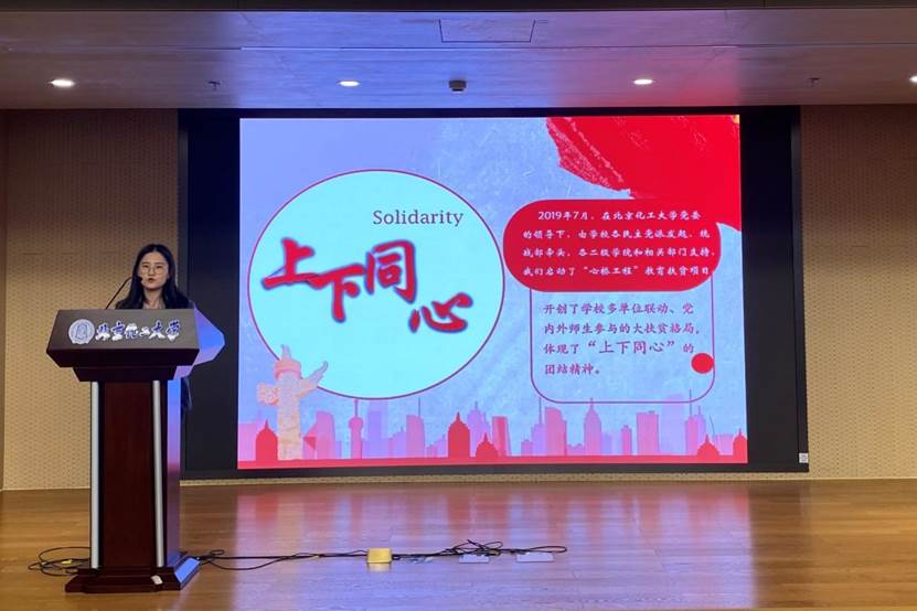 第五组章子慧同学宣讲的主题是“脱贫攻坚精神”,她以张桂梅校长、黄文秀书记以及我校徐泽敏老师等人的感人事迹为依托,结合我校特色教育扶贫项目“心桥工程”,系统阐述了脱贫攻坚精神的深刻内涵,激励广大同学自立自强、奋发成才。