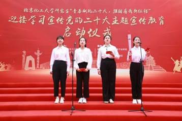 为迎接学习宣传党的二十大,庆祝中国共青团成立100周年,进一步加强研究生爱党爱国爱社会主义教育,4月25日上午,北京化工大学研究生“青春献礼二十大,强国有我新征程”迎接学习宣传党的二十大主题宣传教育启动仪式在东校区举行。马克思主义学院理论宣讲团全体成员参与了此次活动。