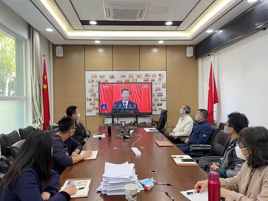 2022年10月16日,中国共产党第二十次全国代表大会在北京人民大会堂开幕,德法教研室党支部通过线上线下相结合方式组织全体党员集体收看开幕式直播,并在会后组织学习交流。学院党委书记罗兵和支部党员一起在学院会议室收看开幕式直播。