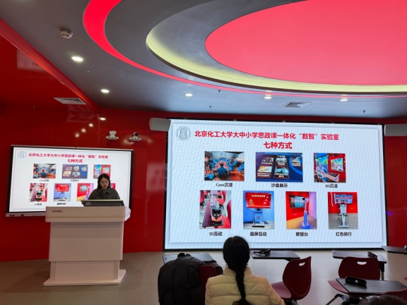 为深入贯彻落实习近平总书记关于思政课建设的重要指示精神,推动高校思政课改革创新走深走实,2025年11月18日上午,广东轻工职业技术大学马克思主义学院副院长蔡小葵、教研室主任高雅一行到北京化工大学思政学习中心“数智”实验室调研交流。北京化工大学马克思主义学院教师、北京市学校思政课青年骨干教师“1+N”教研工作坊(培育项目)负责人何宛怿进行讲解介绍,学院青年教师代表参加交流。