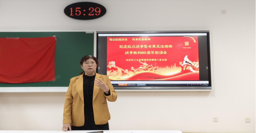 党课结束后,全体与会师生共同观看了离退休第八党支部老师“铭记抗战历史 传承民族精神——纪念抗日战争暨世界反法西斯战争胜利80周年朗诵会”视频。老教师们饱含深情地朗诵,背景中配以珍贵的历史影像,朗诵中讴歌革命先烈的诗篇,生动再现了杨靖宇等英雄人物的光辉形象,展现了“革命理想高于天”的坚定信仰。