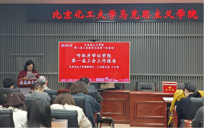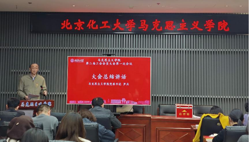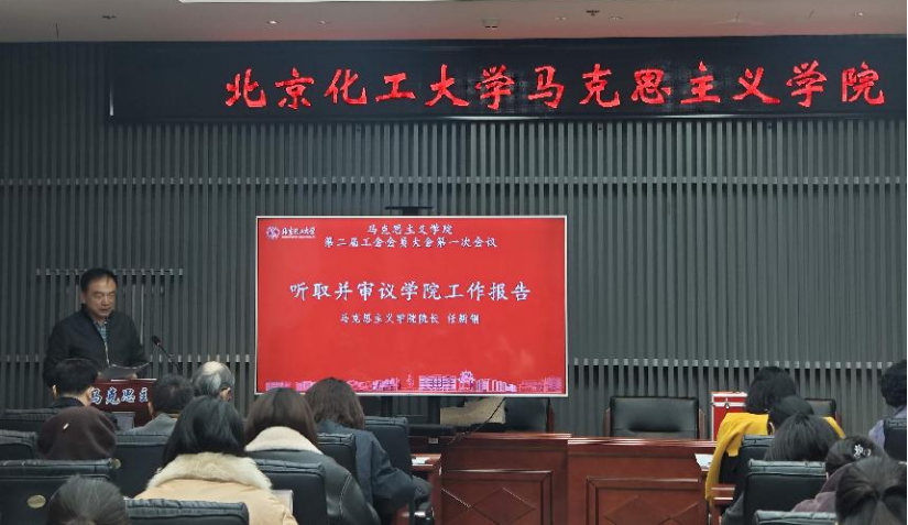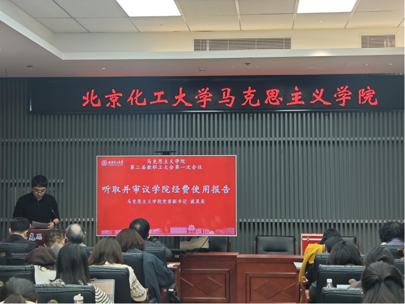 2025年11月28日上午马克思主义学院第二届教职工大会、工会会员大会第一次会议北京化工大学昌平校区文理楼103顺利召开。本次大会分为预备会议和正式会议两个阶段,预备会议由学院党委书记戚昊辰主持,通过大会主席团名单大会议程,正式大会由大会主席团主持,全院全体教师和工会会员参加