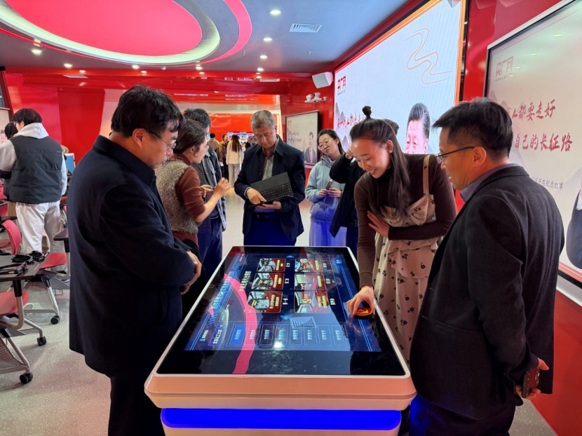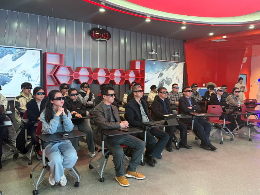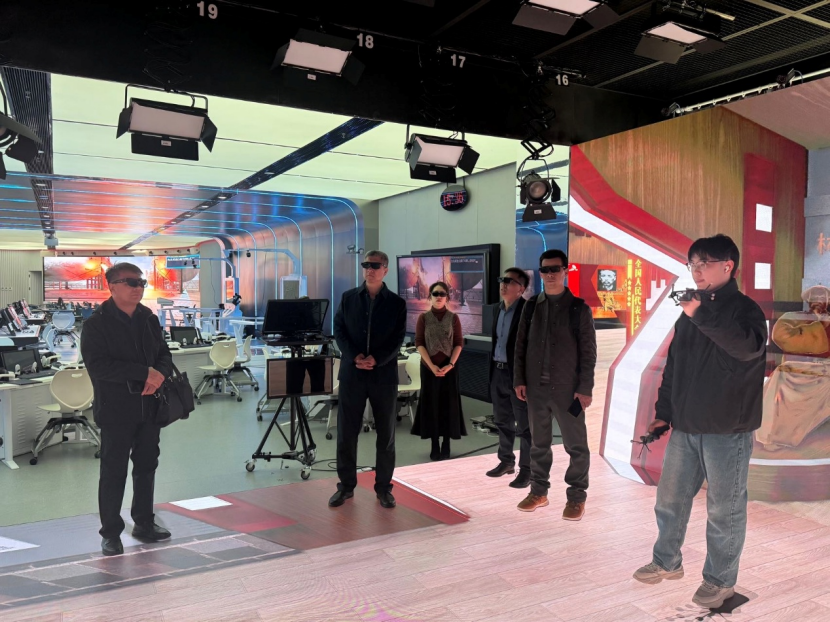 在调研过程中,来访一行在“数智”实验室现场观摩思政课教学,直观感受数字技术深度融入课堂的教学效果。在沉浸式教学环境中,教师综合运用人工智能、虚拟现实(VR)、增强现实(AR)等技术手段,有效创新了思政课的内容呈现、互动方式与学习体验,充分展现了“数智”实验室在推进思政课改革创新与思想政治教育数字化转型中的实践成果。