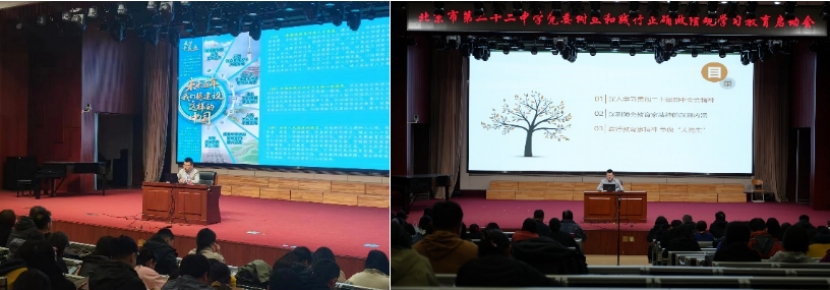 3月31日下午,马克思主义学院毕文锐副教授为北京市第二十二中学为全校教职工100余人进行《以教育家精神铸魂育人 做有信仰有情怀有担当的教师——深入学习贯彻党的二十届四中全会精神》理论宣讲,特别是以北京化工大学优秀教师事迹为案例,引导教师坚持为党育人、为国育才,以过硬素养与育人实绩助力教育强国建设。